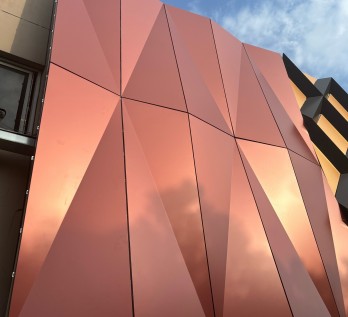 鋁單板變形的表現(xiàn)形式多種多樣。有些鋁單板會(huì)出現(xiàn)局部的凹陷或凸起,就像原本平整的鏡面出現(xiàn)了坑洼,破壞了建筑表面的平滑感。在一些大型建筑的外立面上,這種局部變形會(huì)非常顯眼,嚴(yán)重影響建筑的外觀(guān)形象。還有些鋁單板會(huì)發(fā)生整體的彎曲或扭曲,使得原本整齊排列的鋁單板變得參差不齊,破壞了建筑的整體協(xié)調(diào)性。特別是在一些追求簡(jiǎn)潔、流暢線(xiàn)條的現(xiàn)代建筑中,鋁單板的整體變形會(huì)讓建筑的設(shè)計(jì)美感大打折扣。